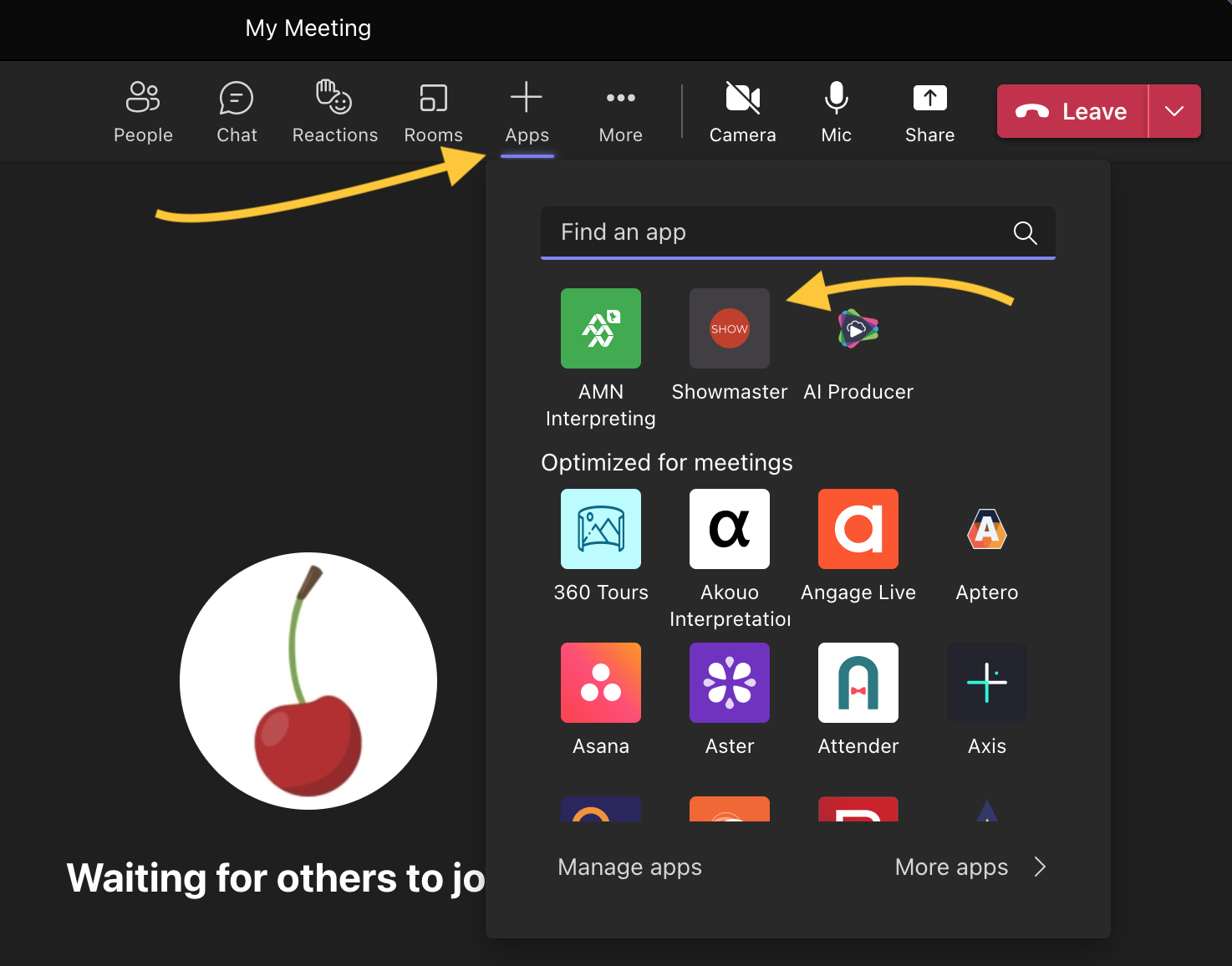 - Click on the Apps button to see all available apps and choose Showmaster from the list.