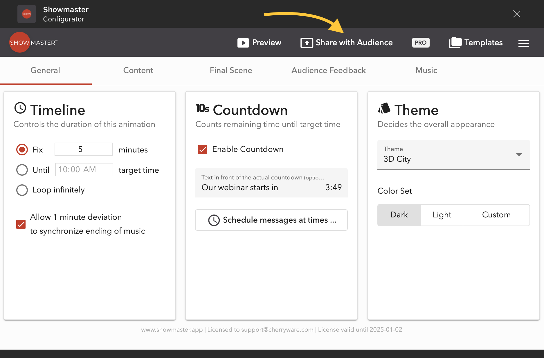 To learn how to create a nice intro with Showmaster™, take a look at our tutorial video.
