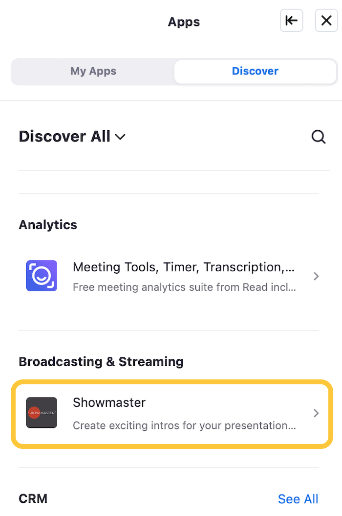 - Choose Showmaster from the list.