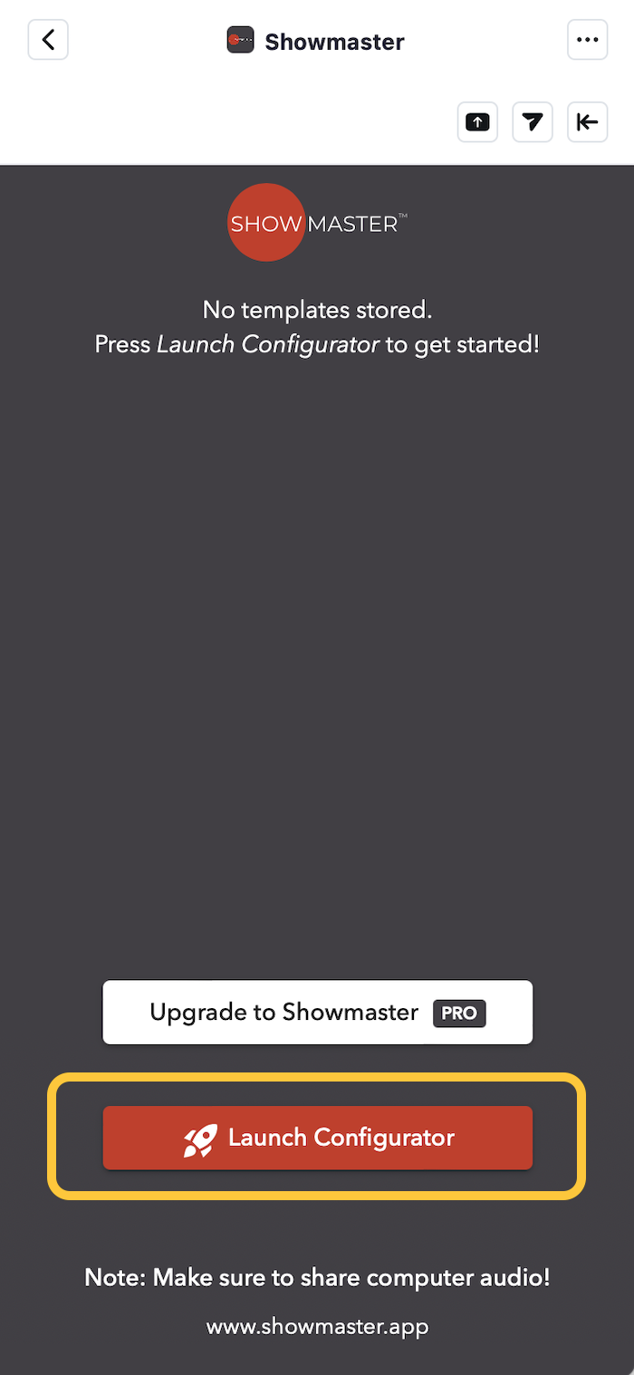 - Click Launch Configurator to create a new show.